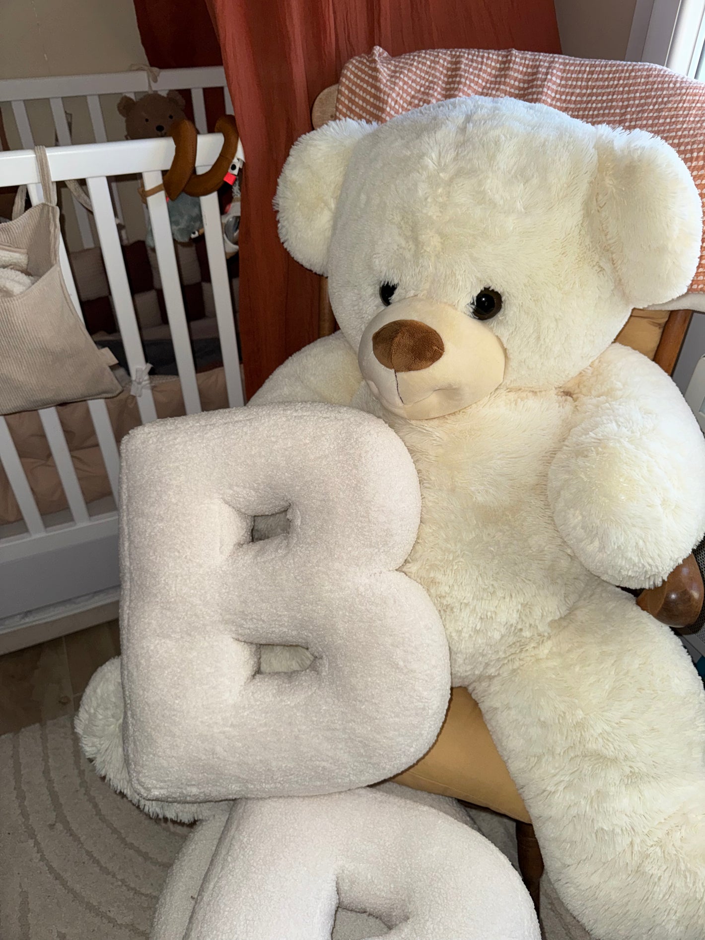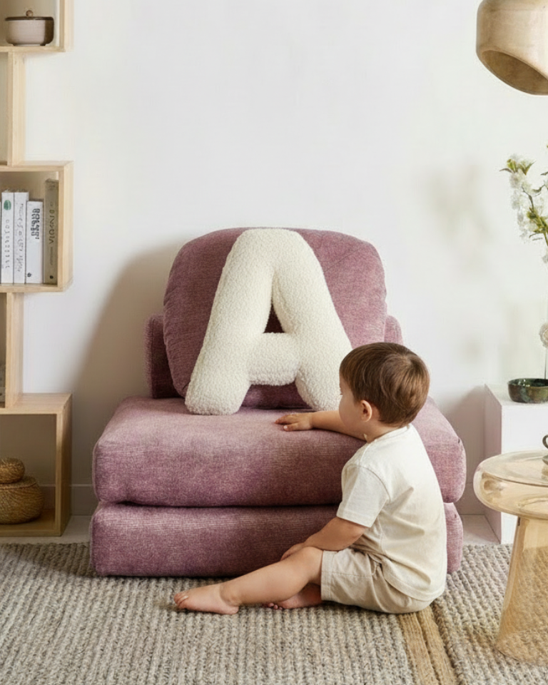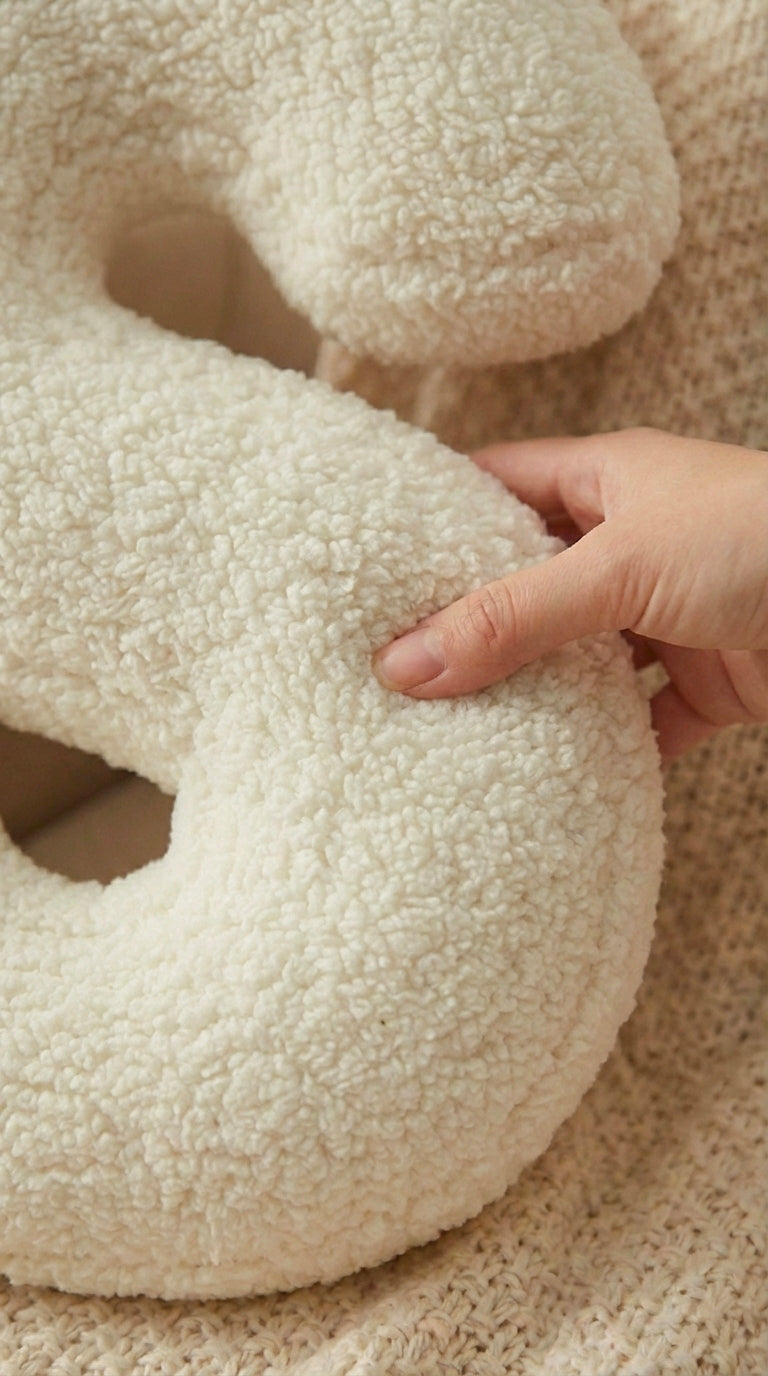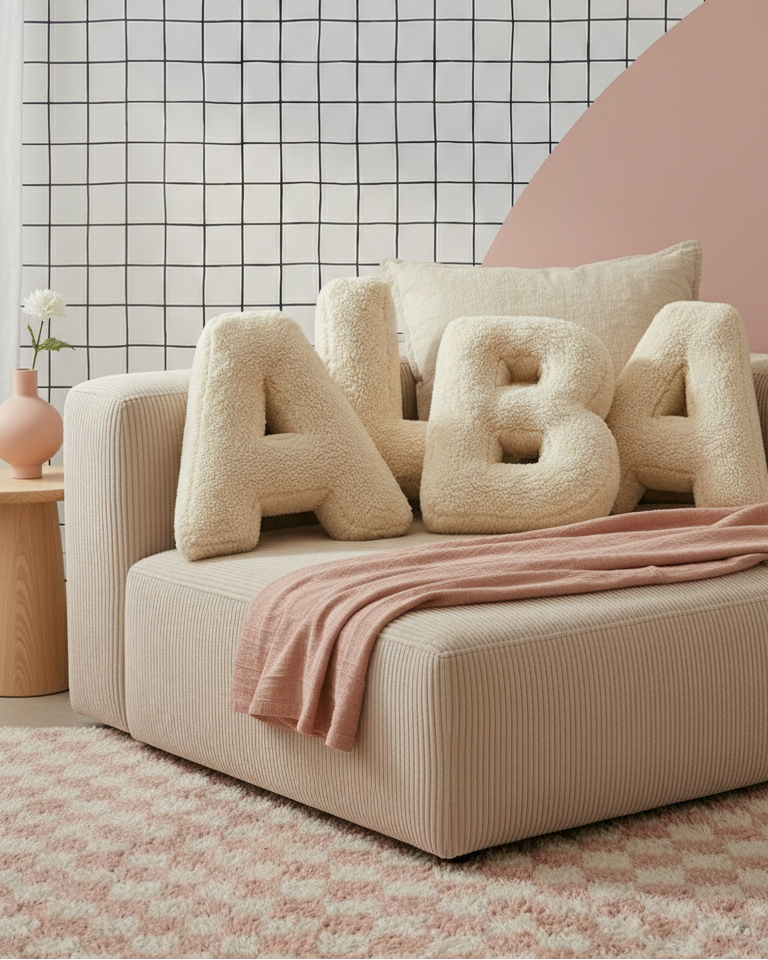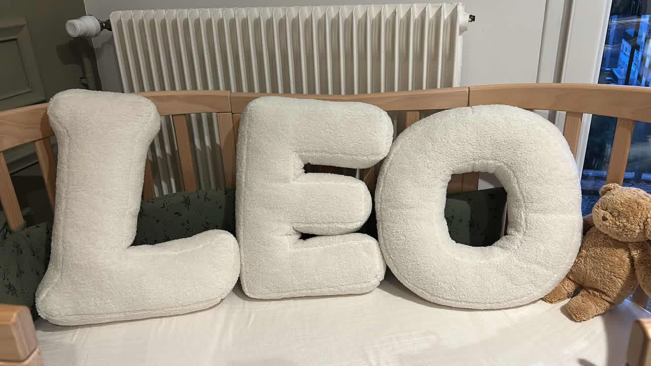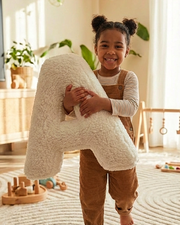 Composez un prénom ou un mot avec nos coussins lettres en bouclette ultra douce (A à Z). Le cadeau idéal pour une naissance, un anniversaire ou une baby shower 🎁✨